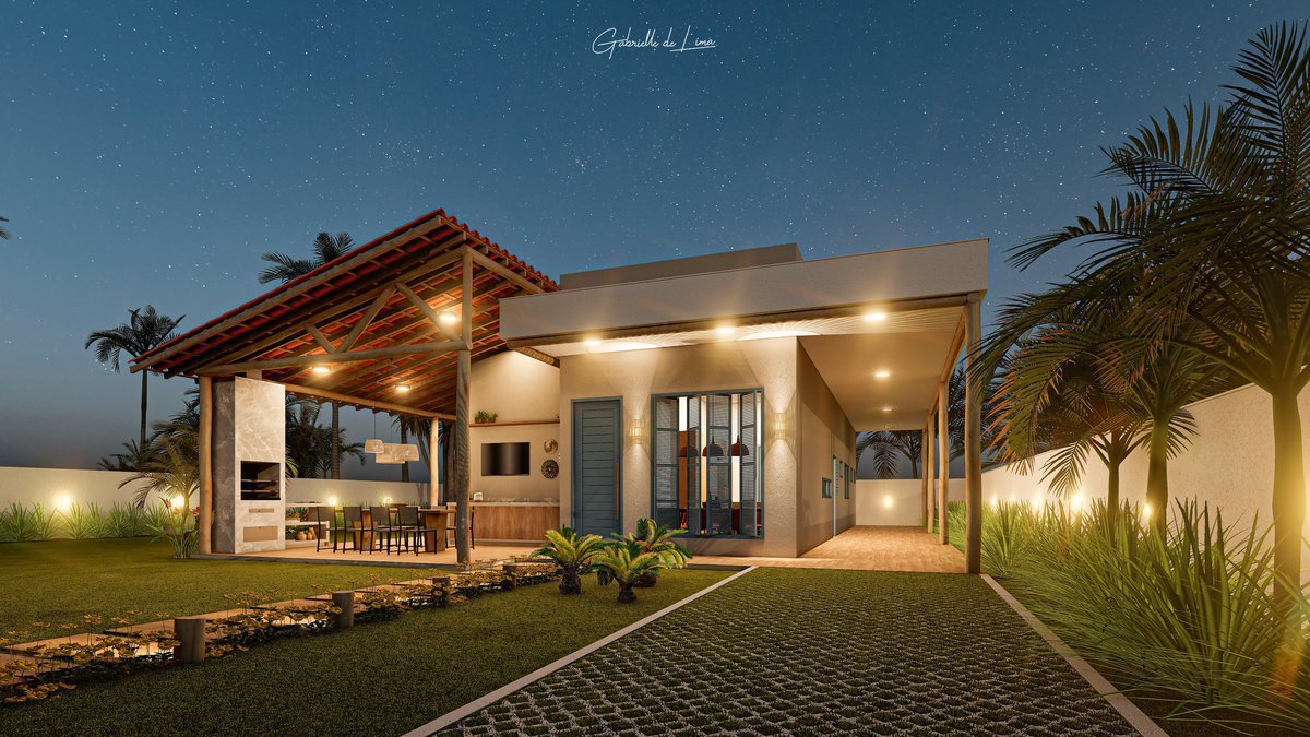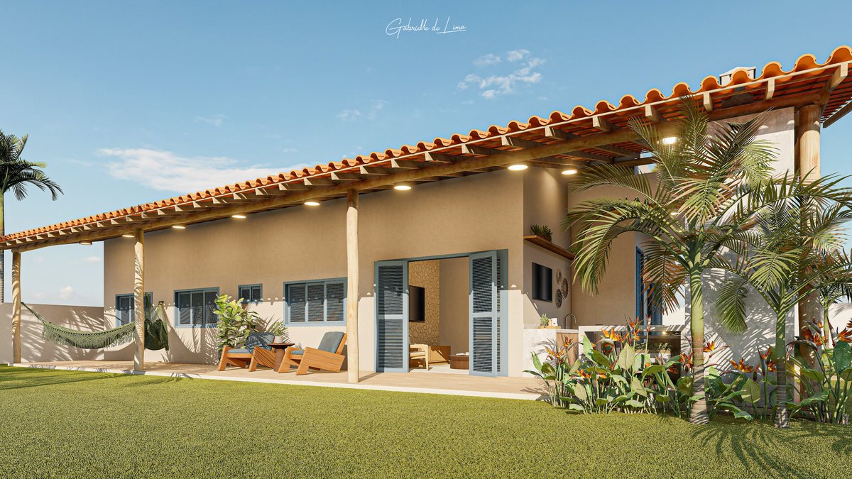 A Casa de Peixe Gordo é um convite à celebração do rústico e do contemporâneo. Rodeada de alpendres, exibindo telhados inclinados e platibandas retas, ela equilibra tradição e modernidade. As áreas externas foram desenhadas como verdadeiros cenários de lazer: chuveirão para refrescar, varanda gourmet para churrascos memoráveis e um redário pra relaxar. Os detalhes em carnaúba reforçam o vínculo com a região e tornam a casa parte da paisagem. Um projeto que não apenas entrega beleza, mas também cria o palco para as melhores histórias dessa família.